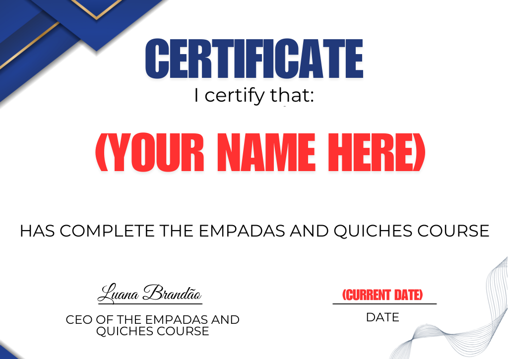 And now, I want you to be one of the many people who can make my empanadas and quiches and receive compliments wherever your treats are served.